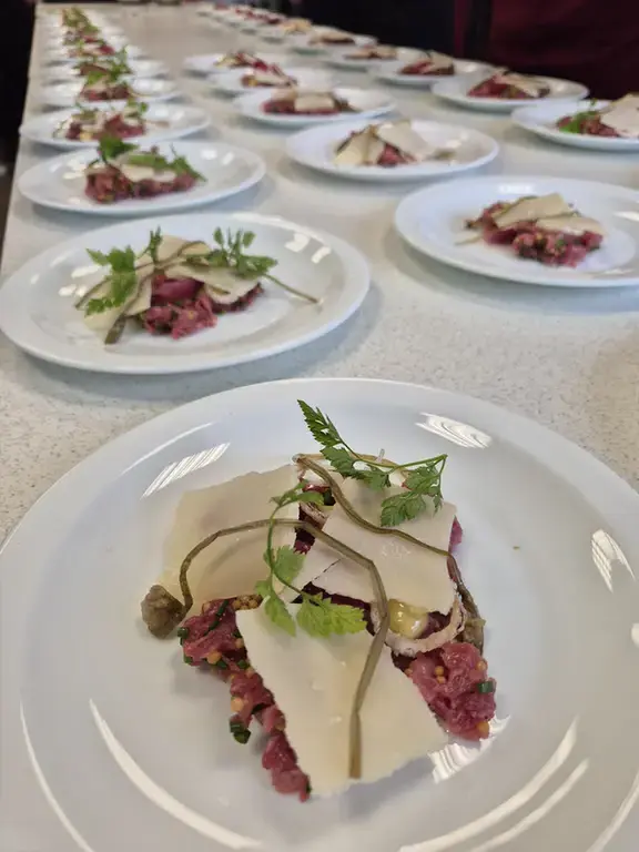 Komandu darba rezultātā tapa izcili ēdieni no dabisko pļavu produktiem. Ēdienkartē: jēra gaļas tartars, govs piena rikotas siers ar marinētiem tomātiem, grilēta liellopa gaļa ar kartupeļu-sviesta biezeni un siena saldējums. Par to kā ēdienu gatavošanā un dekorēšanā izmantot gan savvaļas, gan kultivētos augus, stāstīja un rādīja biedrības biedrs Pēteris Langrāts no saimniecības “Siliņi” (zīmols "Gardi ziedi”).