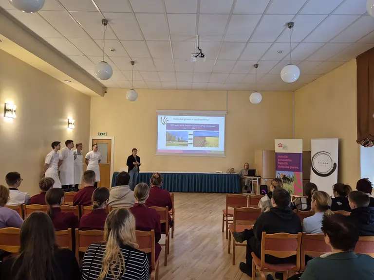 Ko var izdarīt virtuvē ar produktiem no dabiskajām pļavām? To 4.martā uzzināja topošie pavāri no Dobeles Amatniecības un vispārizglītojošās vidusskolas Latvijas Dabas fonda un biedrības “Jauno pavāru kustība” organizētajā meistarklasē par dabisko pļavu produktiem un to izmantošanu ēdienu gatavošanā.